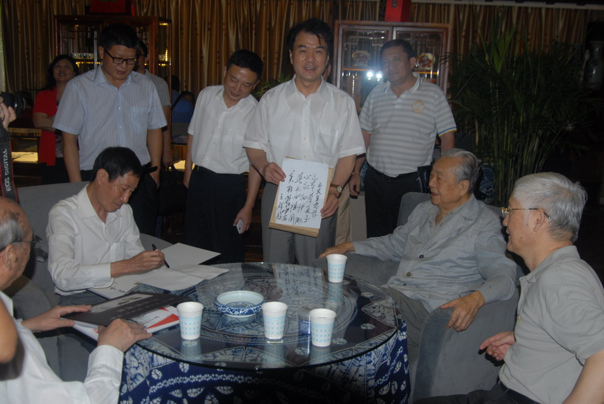 王群老书记将亲笔书写的赞诗赠送给区本先生